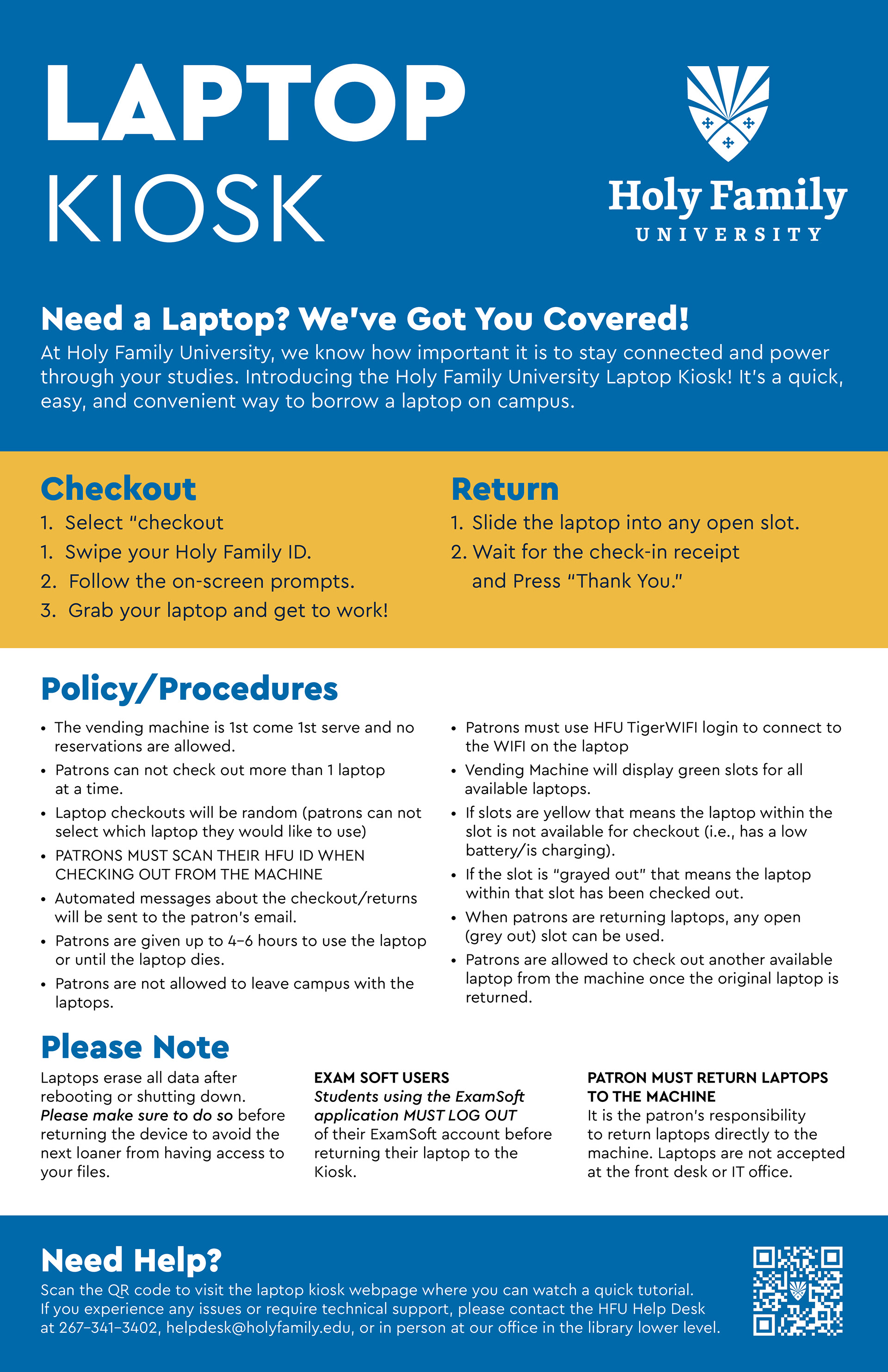 Holy Family University Laptop Lending Kiosks
